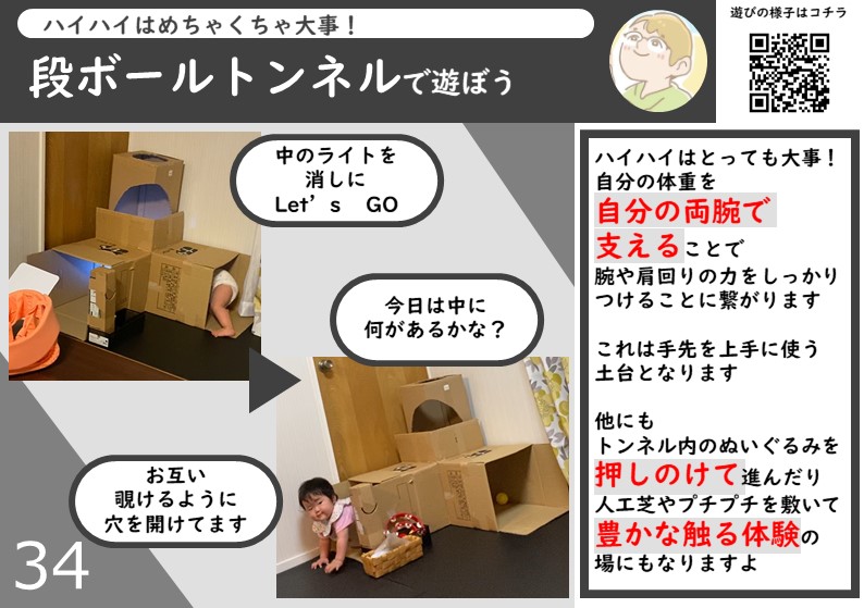 次回は、「動き回ろう!」をテーマとしたお家で出来る遊びをご紹介します。引き続き段ボールを使った遊びなどを紹介していきます。